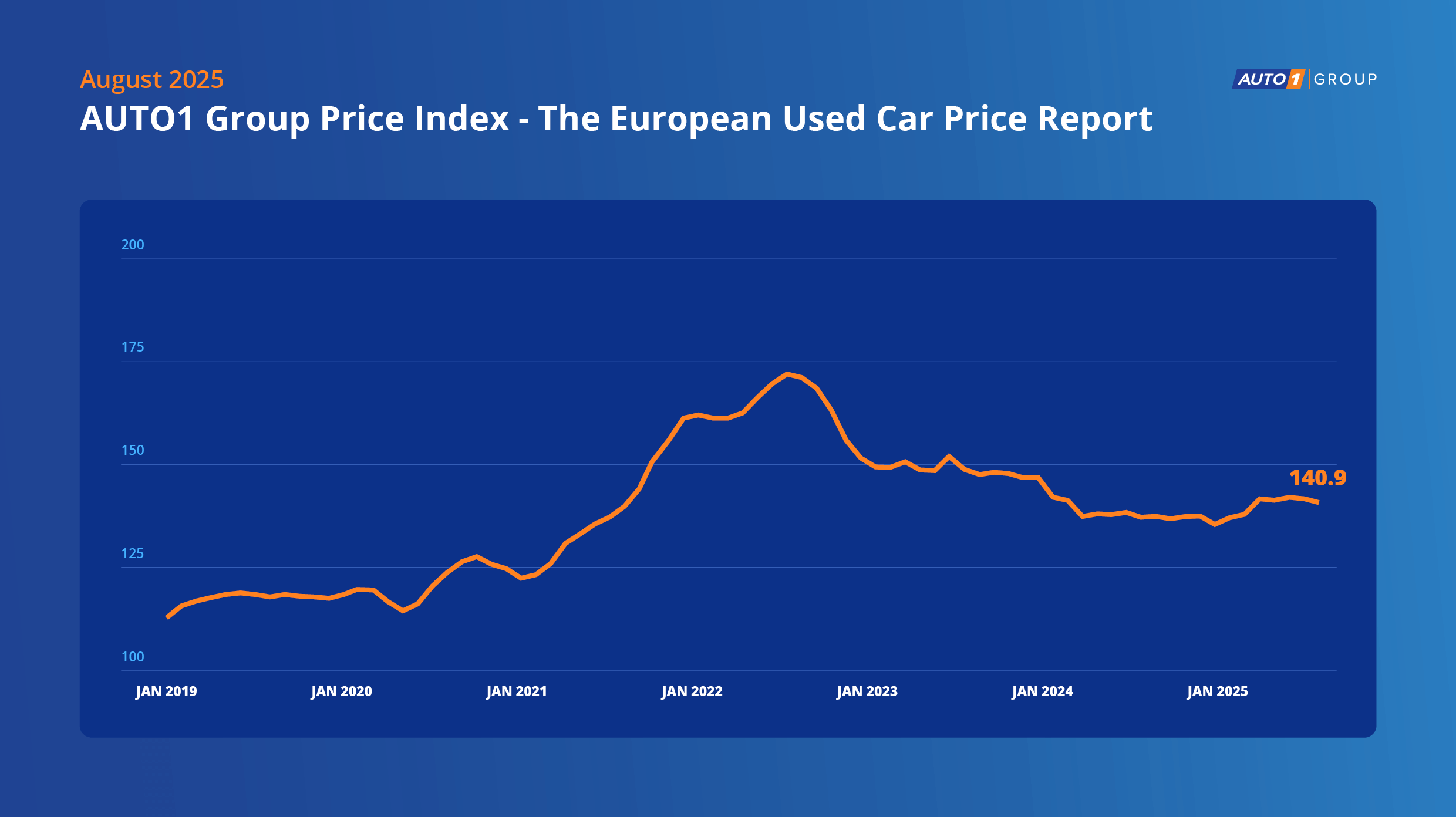 I dati di agosto riflettono un mercato delle auto usate che si conferma stabile e solido in Italia, con un calo dello lo 0,7% su base mensile. L’AUTO1 Group Price Index segna 140.9 punti nel settimo mese dell’anno, rispetto ai 141.9 di giugno.